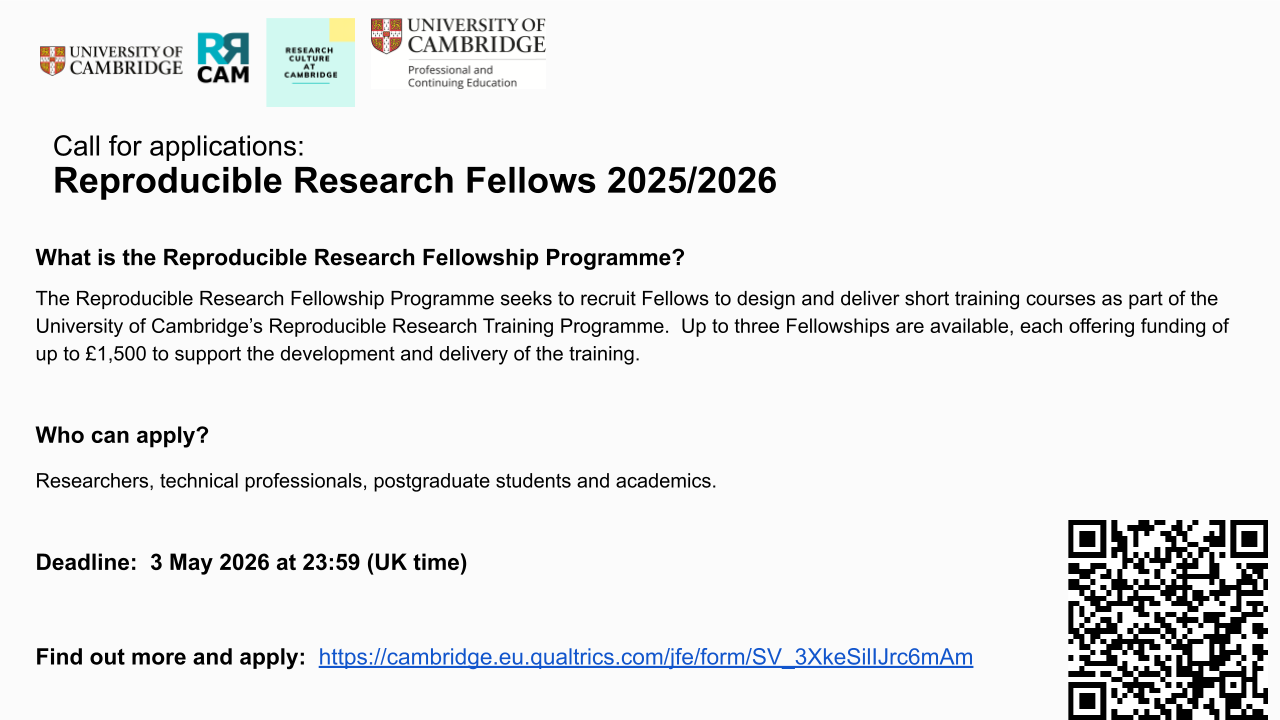 RRCam is excited to announce our inaugural Reproducible Research Fellowships for the 2025/26 academic year.
